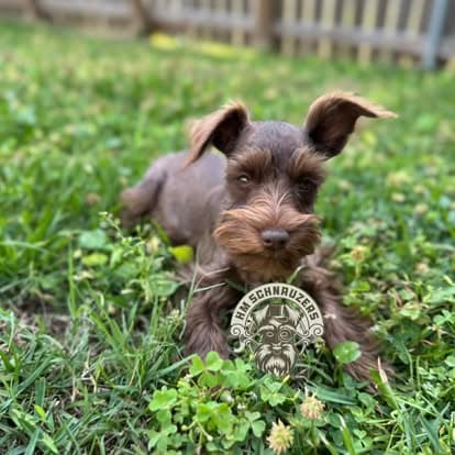 Our breeding dogs undergo full OFA health evaluations including cardiac, eye, and hip screenings relevant to the Schnauzer breed. You receive a complete health record with every puppy.